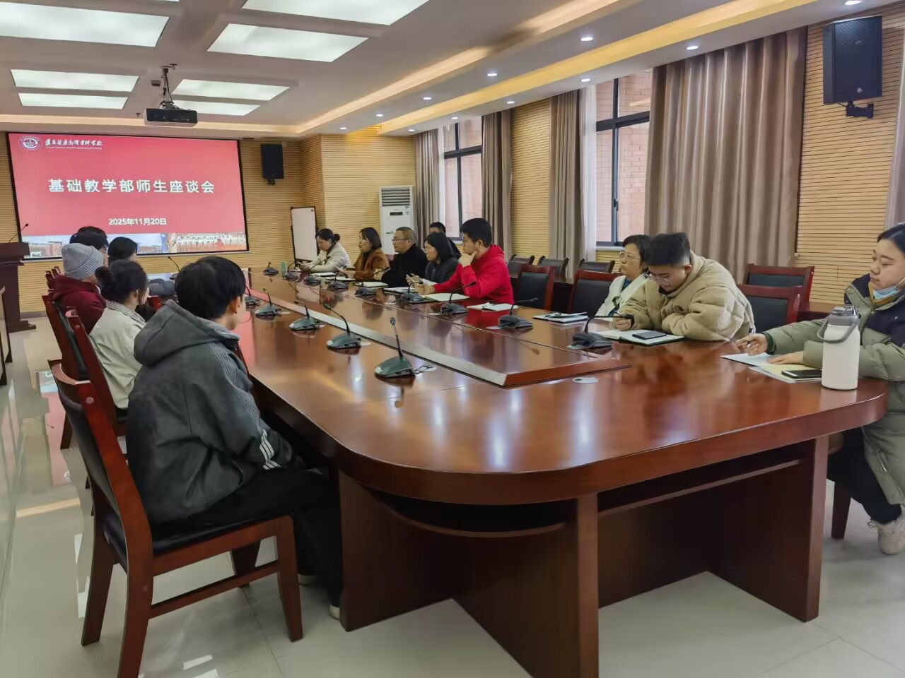 为深入了解基础教学部教师授课及学生学习情况,进一步提升教学质量,营造积极向上的课堂与学习氛围,促进师生关系健康发展,做好师德师风的宣传与落实工作,推动学校各项工作与建设,11月20日下午,基础教学部在综合楼737会议室召开了2025年度师生座谈会。会议由基础教学部副主任丁朋晓主持,基础教学部党总支书记于忠元、副主任陈哲洪、各教研室主任、办公室与教务科成员以及2024、2025级各专业班级的学生代表参加了本次会议。